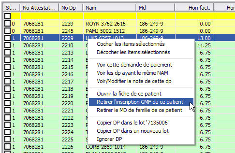 Dans la conciliation, possibilité de retirer le statut de patient inscrit ou le médecin de famille du patient de la d.p. sélectionnée (menu contextuel).