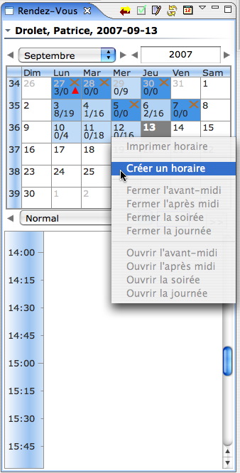 Il est maintenant possible de créer un horaire directement du calendrier grâce à ce nouveau choix du menu contextuel.
