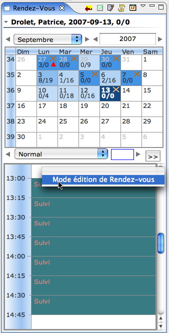 Menu contextuel du calendrier |